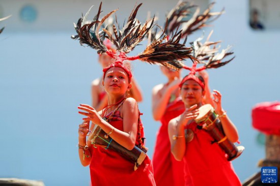 9月3日,中國海軍“和平方舟”號醫(yī)院船抵達東帝汶帝力港,當地民眾表演特色歌舞歡迎。新華社發(fā)(黎宇 攝)