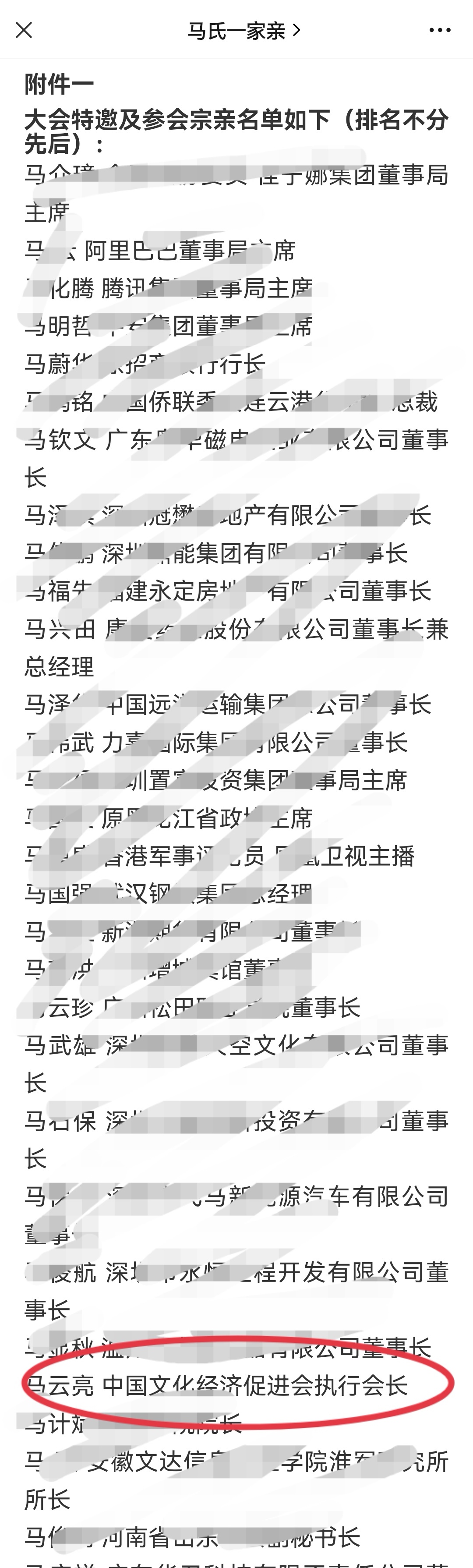 中新財(cái)經(jīng)記者還發(fā)現(xiàn),“馬氏一家親”微信公眾號(hào)發(fā)布的“2015中華馬氏宗親(深圳)大會(huì)暨中華馬氏宗親總會(huì)成立大會(huì)邀請函”中,大會(huì)聯(lián)系人包括馬云亮。彼時(shí),馬云亮的職務(wù)為中國文化經(jīng)濟(jì)促進(jìn)會(huì)執(zhí)行會(huì)長,邀請函中還公布了馬云亮的聯(lián)系電話。根據(jù)天眼查公開的信息,該聯(lián)系電話與睿澤藝術(shù)2016年報(bào)中提供的企業(yè)聯(lián)系電話一致。