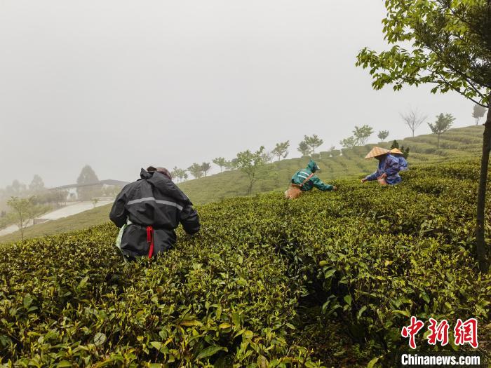 3月24日,福建福鼎的茶園里,工人們正在采摘茶葉?!£愖尕?攝