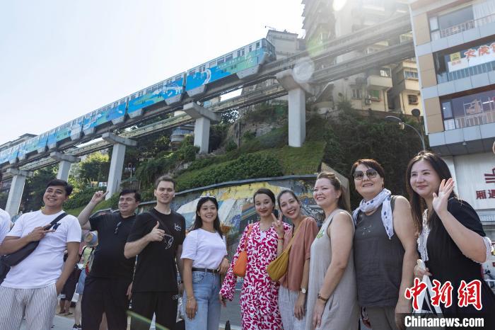 穿樓而過的李子壩軌道交通站是重慶知名旅游景點。參訪團一行乘坐重慶軌道交通二號線到達李子壩站,體驗“軌道上的重慶”。“這棟樓里有人住嗎?”“列車穿樓過對樓內(nèi)居民生活有沒有干擾?”代表團一行出站后詢問工作人員。