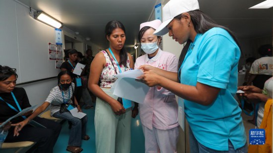 中國海軍“和平方舟”號醫(yī)院船訪問東帝汶并開展醫(yī)療服務期間,醫(yī)院船醫(yī)護人員為當?shù)孛癖娞峁┽t(yī)療服務(9月8日攝)。新華社發(fā)(黎宇 攝)