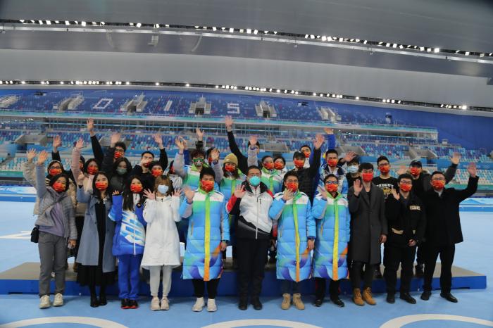 北京大學(xué)體育教研部臺籍教師陳文成組建的臺胞志愿者服務(wù)隊在北京冬奧會上合影。 本人供圖
