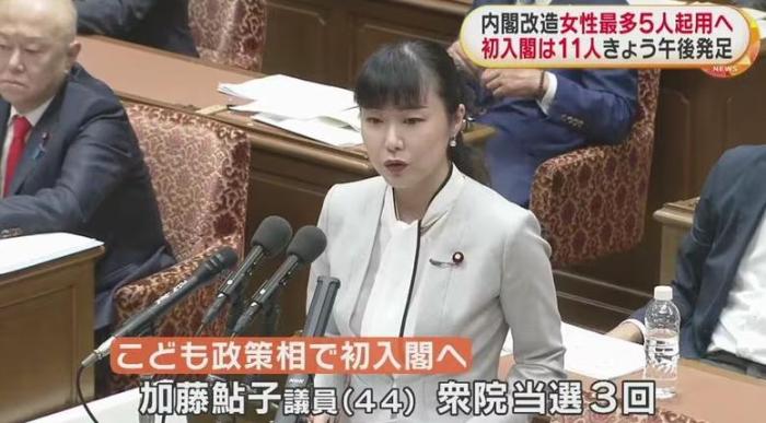 首次入閣的兒童政策擔(dān)當(dāng)大臣加藤鲇子。圖片來源:日本富士電視臺(tái)視頻截圖