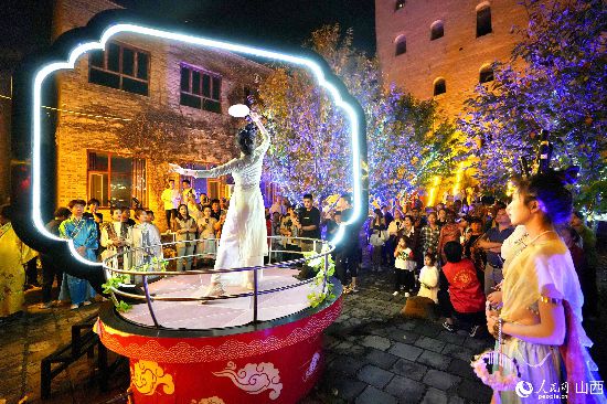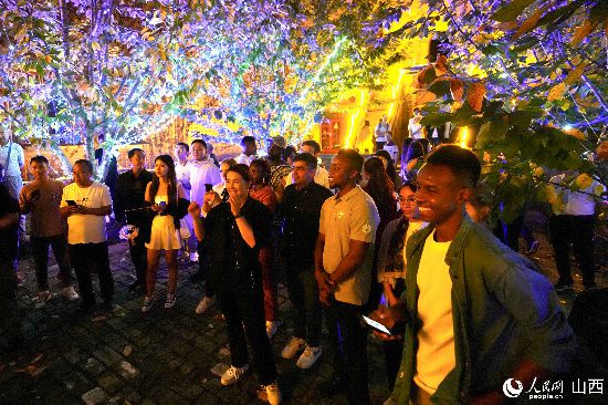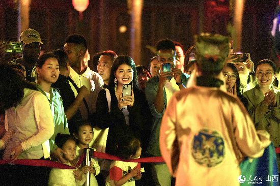 眼花繚亂的民俗表演,沉浸式的古城巡游,絢爛的城樓燈光秀,陶醉的狂歡……9月15日夜晚,在即將結束山西之行的前夜,2023“漢字緣”國際故事大會決賽的選手們夜游山西省晉城市陽城縣郭峪古城,于燈火闌珊處感受古城中的人間煙火。(人民網(wǎng) 盧鵬宇攝)