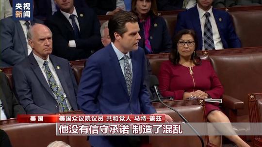 《紐約時報》報道說,3日表決前,眾議院出現(xiàn)了“離奇的共和黨人對決共和黨人的辯論”,民主黨人就在那兒“靜靜坐著看”。提出罷免動議的共和黨眾議員馬特·蓋茲指責麥卡錫,稱他違背年初當選議長時與黨內(nèi)極端保守派談妥的條件。