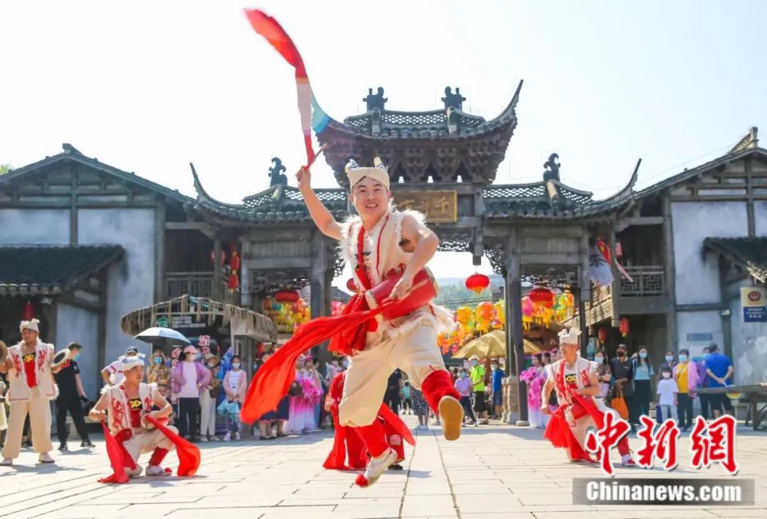 千華古村內(nèi)的“歡慶腰鼓”表演。鐘學(xué)滿(mǎn) 攝