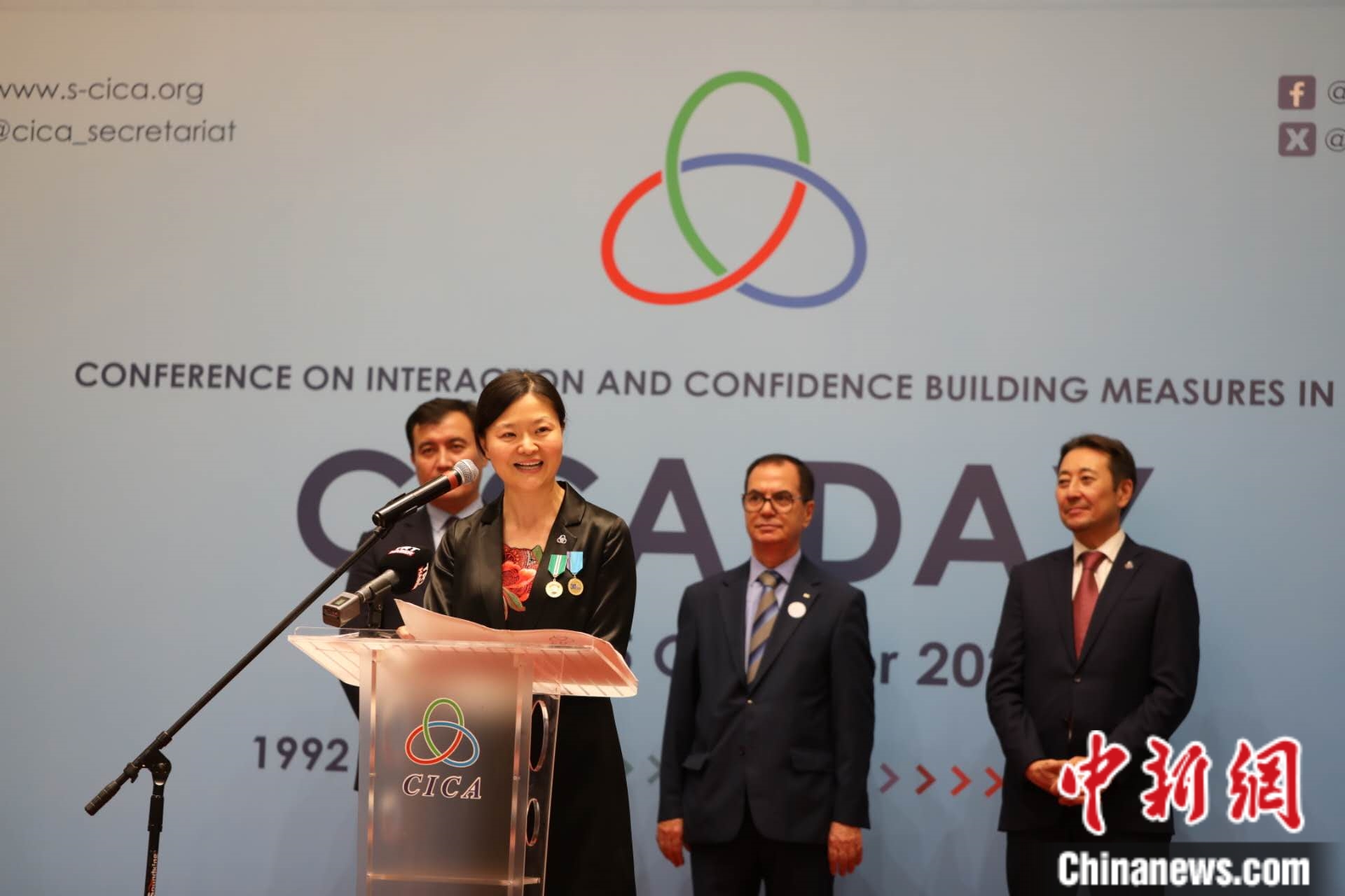 遲方在獲獎致辭中向哈總統(tǒng)托卡耶夫及及亞信會議同仁表達(dá)感激之情,感謝亞信會議各成員國、觀察員國及伙伴國的積極參與支持,并感謝中方在亞信會議進(jìn)程中提供的大力支持。