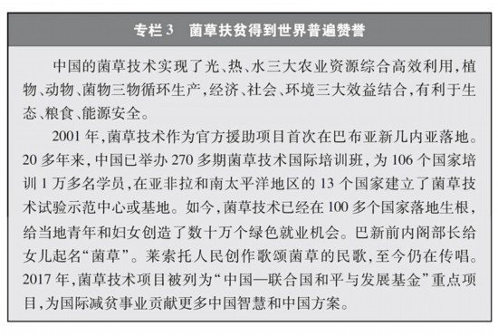 增強(qiáng)共建國家減貧能力。發(fā)展中國家仍面臨糧食問題。中國積極參與全球糧農(nóng)治理,與相關(guān)國家發(fā)布《共同推進(jìn)“一帶一路”建設(shè)農(nóng)業(yè)合作的愿景與行動(dòng)》,與近90個(gè)共建國家和國際組織簽署了100余份農(nóng)漁業(yè)合作文件,與共建國家農(nóng)產(chǎn)品貿(mào)易額達(dá)1394億美元,向70多個(gè)國家和地區(qū)派出2000多名農(nóng)業(yè)專家和技術(shù)人員,向多個(gè)國家推廣示范菌草、雜交水稻等1500多項(xiàng)農(nóng)業(yè)技術(shù),幫助亞洲、非洲、南太平洋、拉美和加勒比等地區(qū)推進(jìn)鄉(xiāng)村減貧,促進(jìn)共建國家現(xiàn)代農(nóng)業(yè)發(fā)展和農(nóng)民增收。促進(jìn)就業(yè)是減貧的重要途徑。在共建“一帶一路”過程中,中國與相關(guān)國家積極推進(jìn)產(chǎn)業(yè)園區(qū)建設(shè),引導(dǎo)企業(yè)通過開展高水平產(chǎn)業(yè)合作為當(dāng)?shù)鼐用駝?chuàng)造就業(yè)崗位,實(shí)現(xiàn)了“一人就業(yè),全家脫貧”。麥肯錫公司的研究報(bào)告顯示,中國企業(yè)在非洲雇員本地化率達(dá)89%,有效帶動(dòng)了本地人口就業(yè)。世界銀行預(yù)測(cè),到2030年,共建“一帶一路”相關(guān)投資有望使共建國家760萬人擺脫極端貧困、3200萬人擺脫中度貧困。