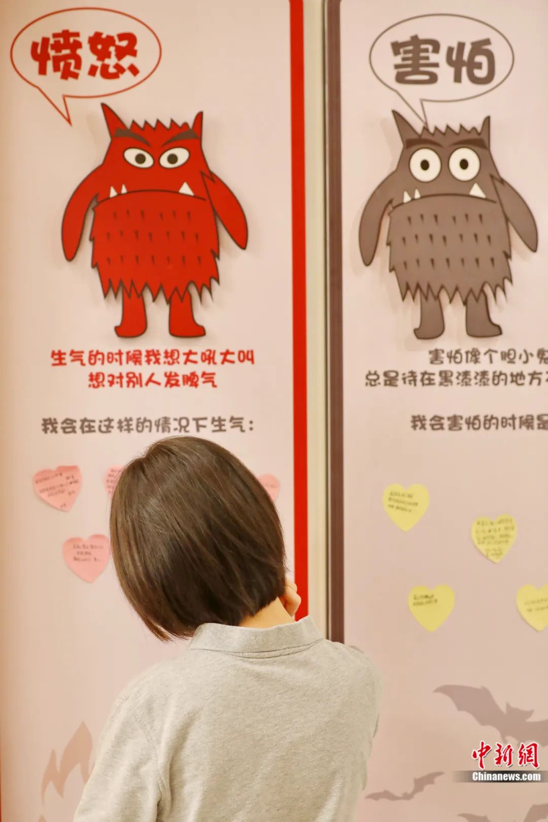 2023年5月14日,在浙江省嘉興市兒童青少年心理健康服務(wù)總站,學(xué)生在“情緒墻”上表達心聲。金鵬 攝