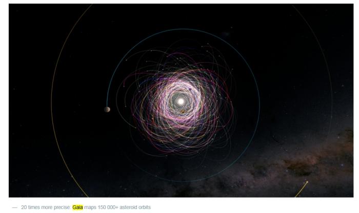 “蓋亞”團(tuán)隊繪制出的150000多顆小行星的軌道。圖片來源:歐洲航天局官網(wǎng)