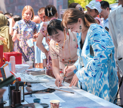 5月,“茶和天下·雅集”活動(dòng)在烏茲別克斯坦首都塔什干舉行,當(dāng)?shù)厥忻裨诨顒?dòng)現(xiàn)場通過書法、剪紙和工藝品展示等領(lǐng)略豐富多彩的中國文化。