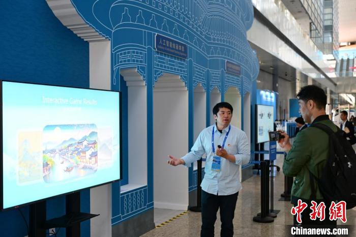 在人工智能繪畫和動(dòng)畫體驗(yàn)區(qū),體驗(yàn)者只需在現(xiàn)場觸控屏前隨意勾畫線條輪廓,智能引擎將據(jù)此生成意境超拔的山水畫卷,讓觀眾體驗(yàn)前沿科技與傳統(tǒng)繪畫交融之趣。體驗(yàn)區(qū)內(nèi)的智能引擎還可建構(gòu)虛擬人物,生成動(dòng)畫短片暢游打卡勝地,讓體驗(yàn)者置身于古都風(fēng)貌和現(xiàn)代生活。