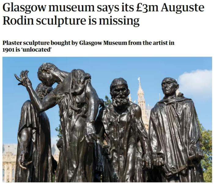 格拉斯哥博物館主管熱羅姆·勒·布萊稱,雕像丟失事件“令人遺憾”。他估計,該雕像如今的價值約為300萬英鎊。