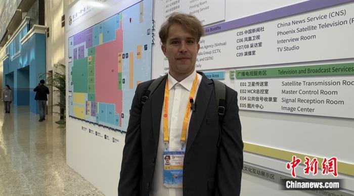 《匈牙利新聞報》記者馬頓接受中新網(wǎng)記者采訪。 中新網(wǎng)記者 單冰潔 攝