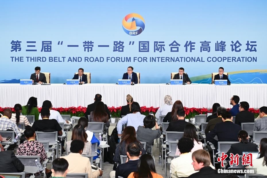 10月16日,第三屆“一帶一路”國際合作高峰論壇新聞中心在位于北京的國家會(huì)議中心舉行首場吹風(fēng)會(huì),邀請自然資源部國際合作司和相關(guān)單位負(fù)責(zé)人介紹有關(guān)情況,并回答記者提問。圖為吹風(fēng)會(huì)現(xiàn)場。 中新社記者 田雨昊 攝