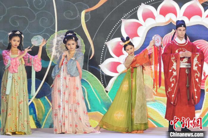 圖為模特展示中國漢服。記者 張興龍 攝