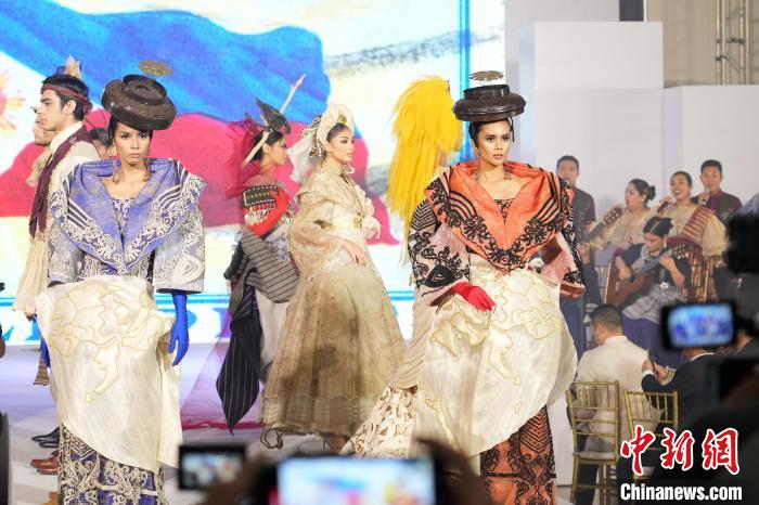 當(dāng)?shù)貢r(shí)間10月24日晚,“凈彩華裳·美美與共——傳統(tǒng)服飾與戲曲走進(jìn)中菲人文之驛活動”在菲律賓首都馬尼拉舉行。中國和菲律賓傳統(tǒng)服飾接連亮相,呈現(xiàn)兩國傳統(tǒng)服飾文化,為觀眾帶來視覺盛宴。圖為模特展示菲律賓傳統(tǒng)服飾。記者 張興龍 攝