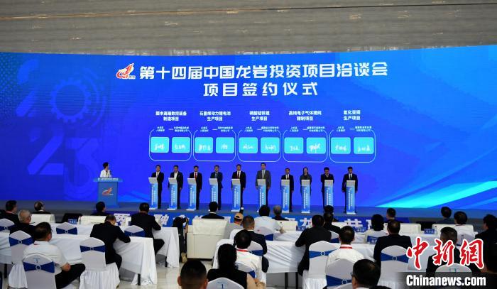 11月8日,第十二屆海峽兩岸機(jī)械產(chǎn)業(yè)博覽會(huì)暨第十四屆中國龍巖投資項(xiàng)目洽談會(huì)在福建省龍巖市拉開帷幕。圖為現(xiàn)場簽約。中新網(wǎng)記者呂明攝