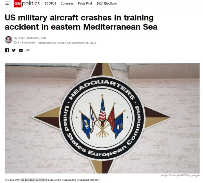中新網(wǎng)11月12日電 據(jù)美國有線電視新聞網(wǎng)(CNN)報道,美國歐洲司令部當?shù)貢r間11日表示,一架美國軍用飛機在地中海東部墜毀。