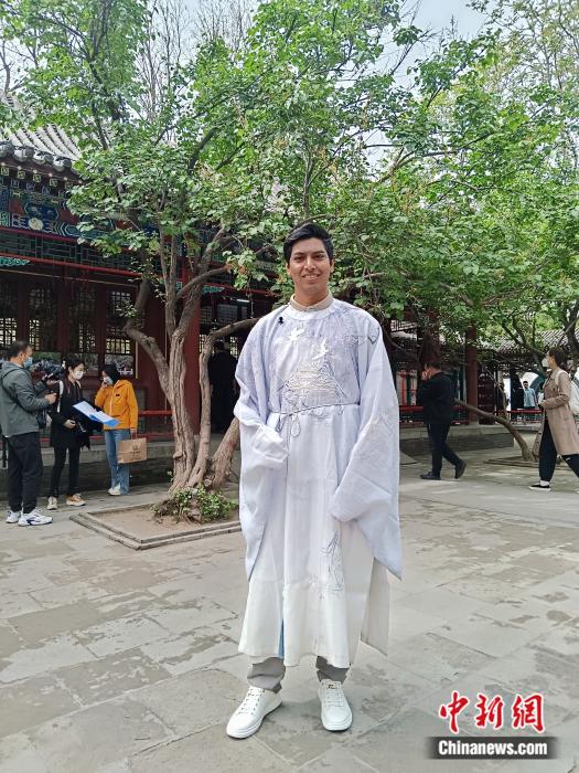 謝民的本科學歷是在北京語言大學拿到的,那時候他就讀了中國古典四大名著之一《紅樓夢》。來到石家莊后,他了解到正定榮國府景區(qū)曾是87版電視劇《紅樓夢》的取景地之一,就興沖沖地跑去參觀。謝民說那是一次非常美妙的經(jīng)歷,尤其是身穿漢服在海棠樹下拍照,讓自己體驗了一次“紅樓夢中人”的感覺。