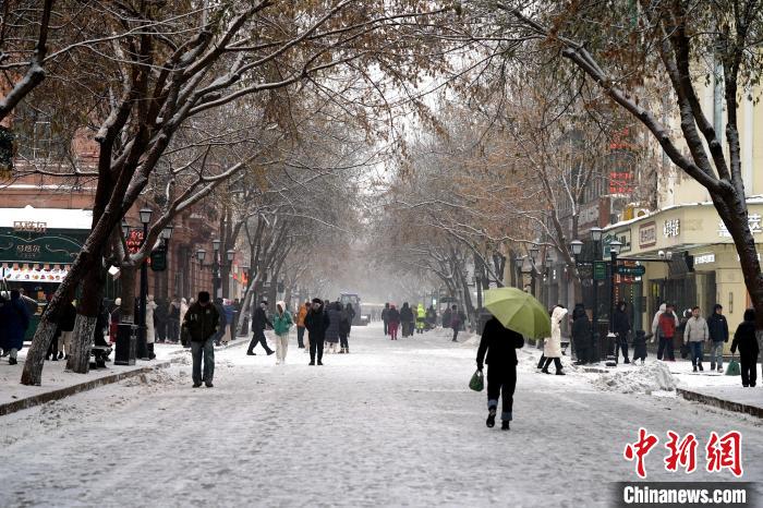 11月16日上午,哈爾濱市民在街路上冒雪出行。趙宇航 攝