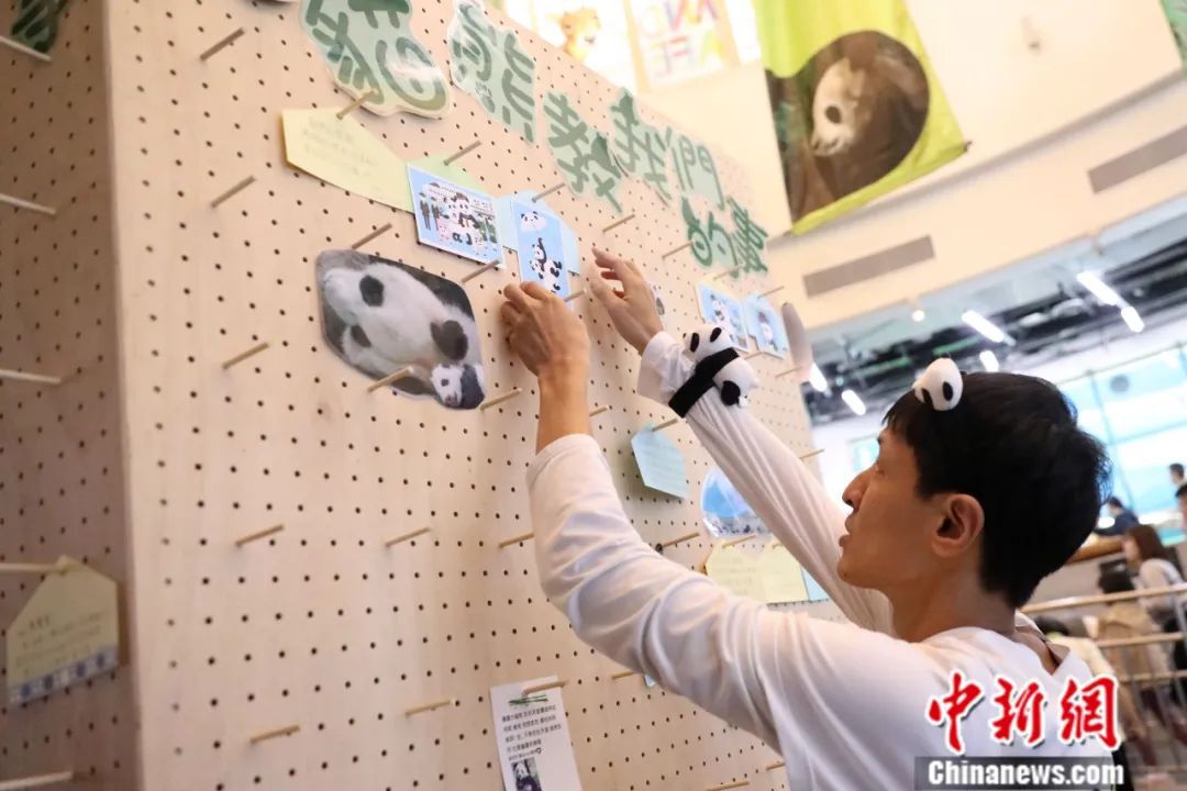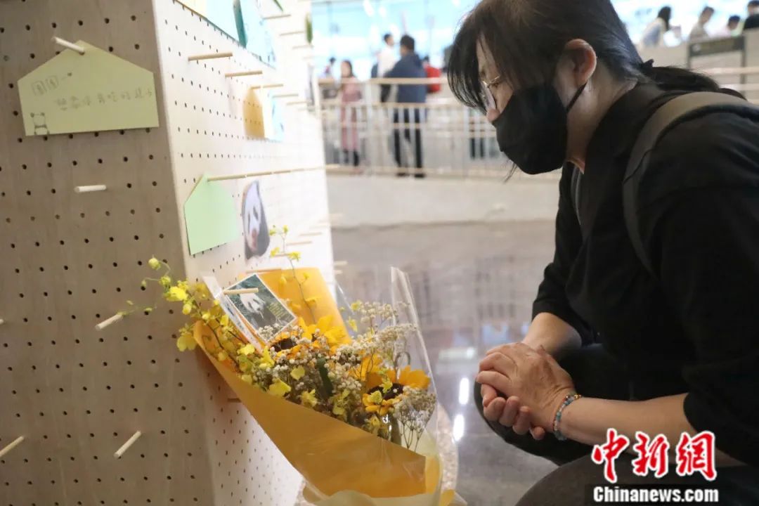 不少家長帶著小朋友來到現(xiàn)場參加活動,小朋友在卡片上慢慢畫出心中熊貓的模樣,并寫下想對“團團”說的話。有的民眾還送來鮮花,表達對“團團”的喜愛和懷念之情。