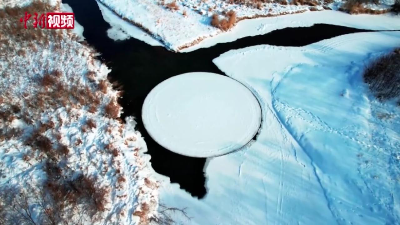內(nèi)蒙古綽爾河上現(xiàn)直徑13.5米大“冰盤”