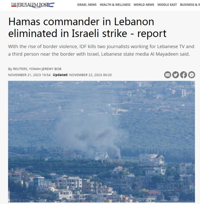 報(bào)道還稱(chēng),當(dāng)天早些時(shí)候,以軍對(duì)黎巴嫩的攻擊還導(dǎo)致兩名為黎巴嫩電視臺(tái)工作的記者以及在黎以邊境的一名工作人員身亡。