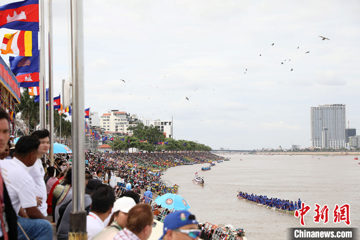 今年送水節(jié)活動(dòng)是柬埔寨自2020年以來(lái)受到新冠疫情影響以及因2022年舉辦東盟峰會(huì),時(shí)隔三年再度舉行。本次送水節(jié)舉辦的龍舟比賽,共有來(lái)自全國(guó)各地338只代表船隊(duì)角逐,超過(guò)2萬(wàn)名劃手參與其中。