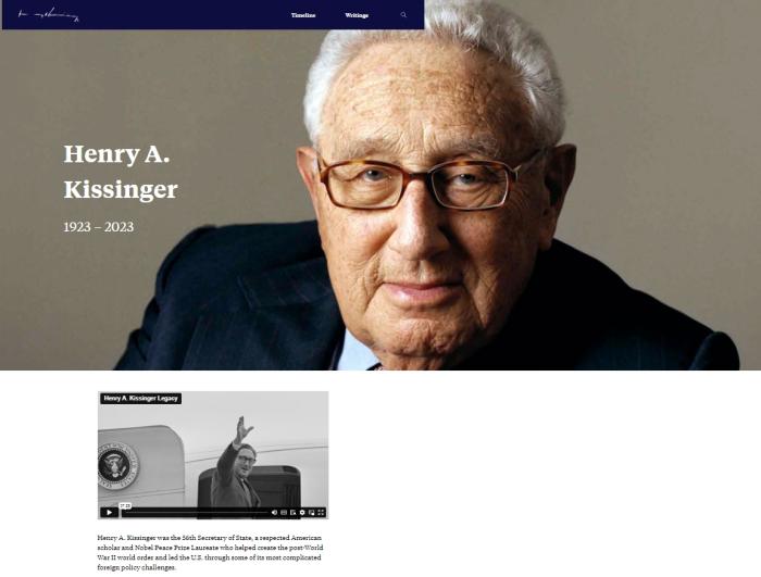 悼文稱(chēng),基辛格一生出版了21本書(shū),包括2014年的《世界秩序》、1994年的《外交》(該書(shū)已成為研究國(guó)際事務(wù)和美國(guó)外交的必讀書(shū))、2011年的《論中國(guó)》,以及涵蓋他在白宮和擔(dān)任國(guó)務(wù)卿期間經(jīng)歷的回憶錄。