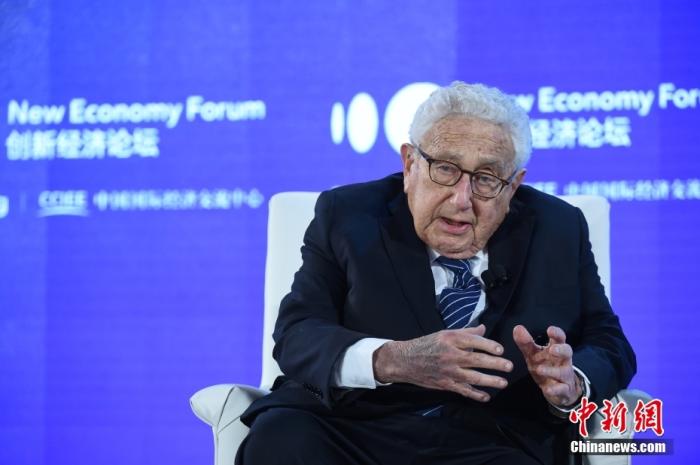 資料圖為2019年11月21日,2019年創(chuàng)新經(jīng)濟(jì)論壇在北京舉行,在“特別會(huì)議—對(duì)話(huà):基辛格博士”環(huán)節(jié),美國(guó)前國(guó)務(wù)卿、創(chuàng)新經(jīng)濟(jì)論壇名譽(yù)主席亨利·基辛格(Henry Kissinger)出席并發(fā)言。