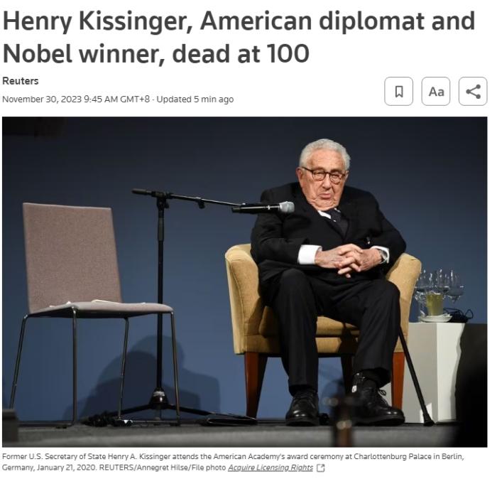 - 美國前國務(wù)卿亨利·基辛格去世