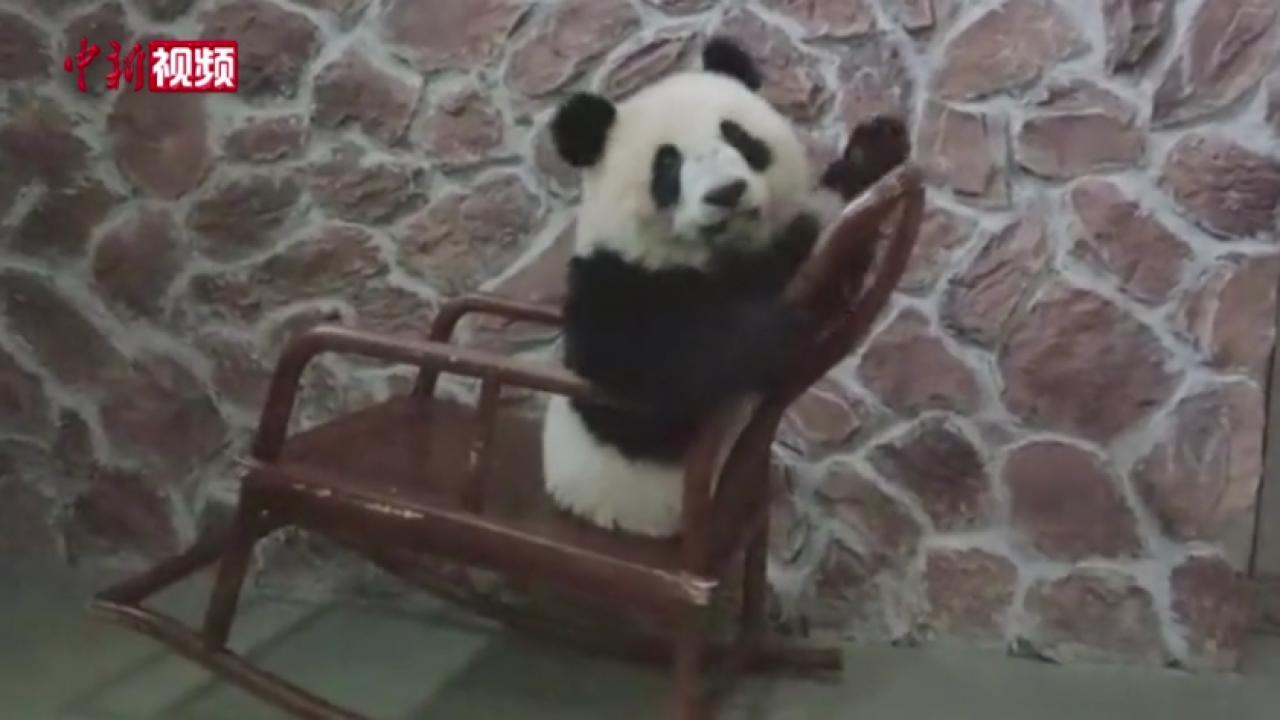 大熊貓“福菀”最新畫面:在小搖椅上愉快玩耍