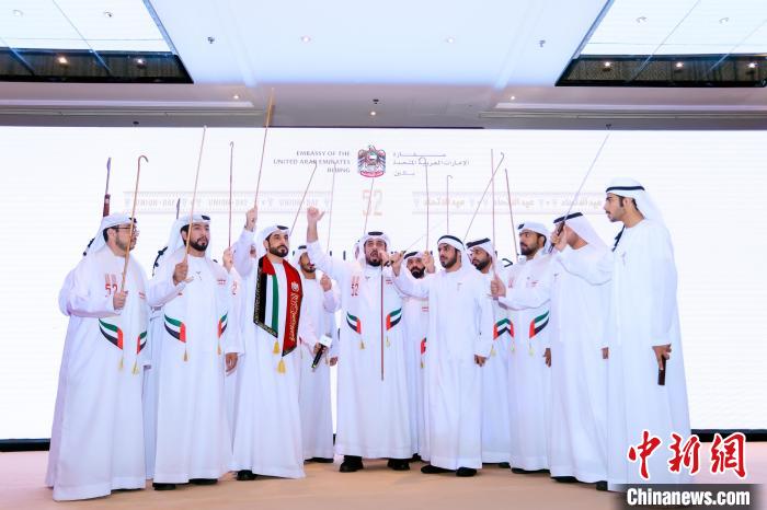 圖為阿聯(lián)酋國慶慶?;顒又械膫鹘y(tǒng)舞蹈表演。 (阿聯(lián)酋駐華使館供圖)