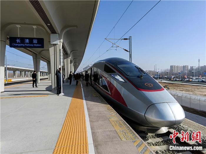 12月8日,濟(jì)鄭高鐵全線通車。圖為在濟(jì)南長清站始發(fā)前往鄭州的復(fù)興號列車。沙見龍 攝