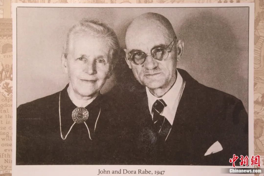 約翰·拉貝北京交流中心展覽上,約翰·拉貝與夫人的合照資料圖。袁理 攝