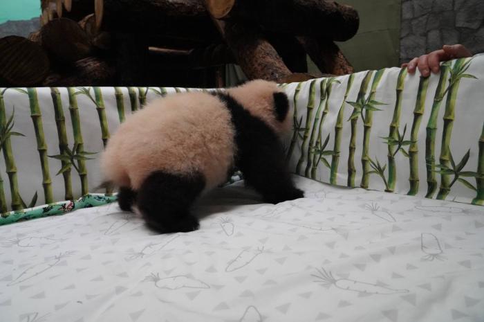 阿庫洛娃12月13日寫道,“小家伙已經(jīng)學(xué)會四肢站立了。烏拉!”此外,她還呼吁大家參與征名活動,為大熊貓幼崽取名。