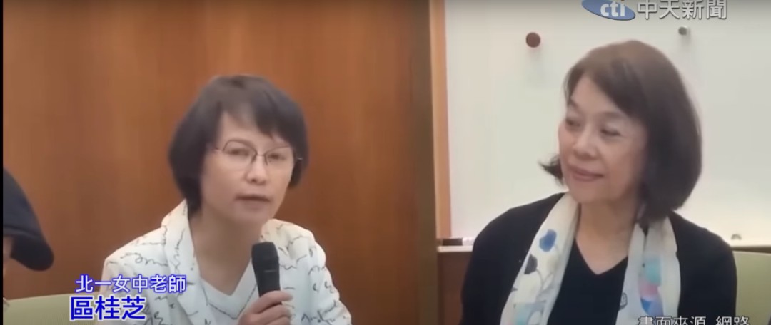 區(qū)桂枝老師在記者會(huì)上痛批“無(wú)恥”課綱。(圖源自臺(tái)灣中天新聞視頻截圖)