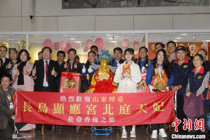 中新社臺(tái)北12月12日電 (記者 陳小愿)山東煙臺(tái)長島顯應(yīng)宮宋代銅身媽祖“北庭天妃”12日抵達(dá)臺(tái)灣桃園機(jī)場,將前往新北、臺(tái)北等多個(gè)縣市的16個(gè)宮廟巡安、探親。