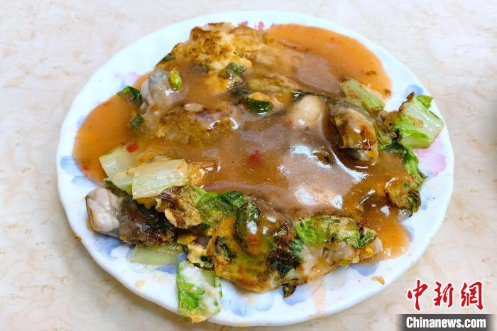 近日,臺(tái)北寧夏夜市里圓環(huán)邊蚵仔煎店的蚵仔煎。 中新社記者 陳小愿 攝