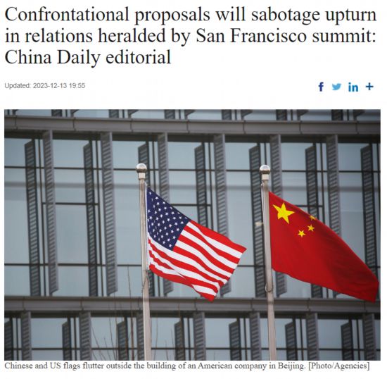 11月,舊金山會(huì)晤達(dá)成共識(shí),中美雙方應(yīng)加強(qiáng)溝通,妥善管控分歧,推進(jìn)對(duì)話(huà)合作。然而,委員會(huì)的提議卻與舊金山會(huì)晤共識(shí)背道而馳,充滿(mǎn)對(duì)抗性。提議或?qū)?dǎo)致美國(guó)國(guó)會(huì)于明年出現(xiàn)更多反華立法,這無(wú)疑將給雙方關(guān)系的改善蒙上陰影。