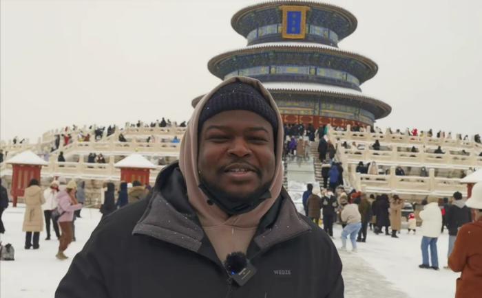 當(dāng)日正值大雪,銀裝素裹的天壇宛如一幅畫卷,古老的祈年殿在白雪的映襯下更顯莊重肅穆。留學(xué)生們沉浸在大雪紛飛的美景中,紛紛拿出手機(jī)互相打卡拍照,記錄下這美好瞬間。哈薩克斯坦籍留學(xué)生阿迪力(ARYSTAN ADIL)向記者介紹,這是他第一次來到天壇,“天壇是古代皇帝祭天祈雨的地方,我對(duì)中國的歷史很感興趣?!卑⒌狭φf。