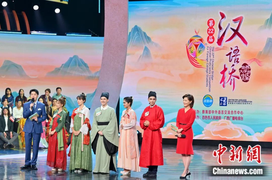 第22屆“漢語(yǔ)橋”世界大學(xué)生中文比賽總決賽比賽現(xiàn)場(chǎng)。俞靖 攝