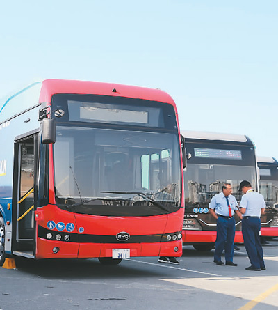中國品牌的電動車停放在COP28的擺渡車停車場。COP28開幕以來,中國品牌的電動車為本次氣候大會提供服務(wù),增添了一道靚麗的風景線。