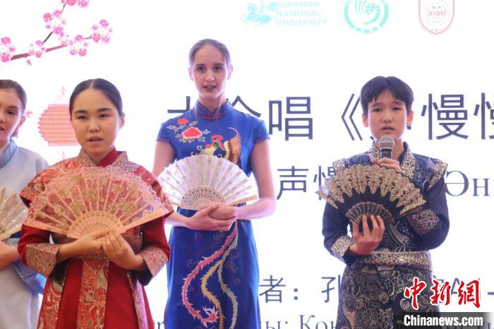 12月22日晚,哈薩克斯坦阿斯塔納,“漢語風(fēng)采,中哈同歡”2024年阿斯塔納中文盛典暨元旦聯(lián)歡慶?;顒优e行。圖為身著中國傳統(tǒng)服飾的哈學(xué)生為觀眾帶來精彩表演。 中新網(wǎng)記者 張碩 攝