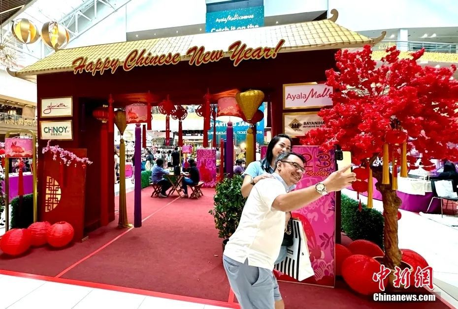 資料圖:當(dāng)?shù)貢r(shí)間1月21日,農(nóng)歷除夕,菲律賓大馬尼拉地區(qū)馬卡蒂市一商場(chǎng)內(nèi),市民在“新春集市”前拍照。近日,該商場(chǎng)搭建了“新春集市”“十二生肖展示區(qū)”等,吸引不少市民前來參觀、購物。中新社記者 張興龍 攝