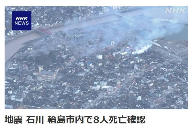 中新網1月2日電 據(jù)日本放送協(xié)會(NHK)最新消息,截至目前,日本石川縣輪島市已有8人因地震死亡。