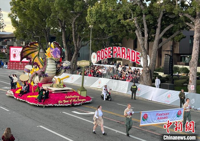 按照玫瑰花車游行的傳統(tǒng),花車由鮮花與枝葉等天然材料裝飾而成。2024年度“玫瑰皇后和玫瑰公主”花車、第110屆“玫瑰碗”橄欖球賽花車、關(guān)愛兒童和重視環(huán)保等主題花車各具匠心。值得一提的是,在中國傳統(tǒng)節(jié)日龍年春節(jié)即將到來之際,南加州華人聚居地阿罕布拉市帶來以“慶祝龍年”為主題的花車,用花朵融匯龍、音樂與愛等元素,憑借“奇幻與想象力方面的出色展現(xiàn)”榮獲花車設(shè)計“想象力獎”。