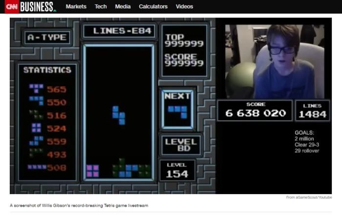 吉布森把自己的通關(guān)視頻上傳網(wǎng)絡(luò),表示自己“要昏過(guò)去了,感覺不到自己的手指了”。他認(rèn)為,“俄羅斯方塊”上手容易,但玩到高手級(jí)別很難。