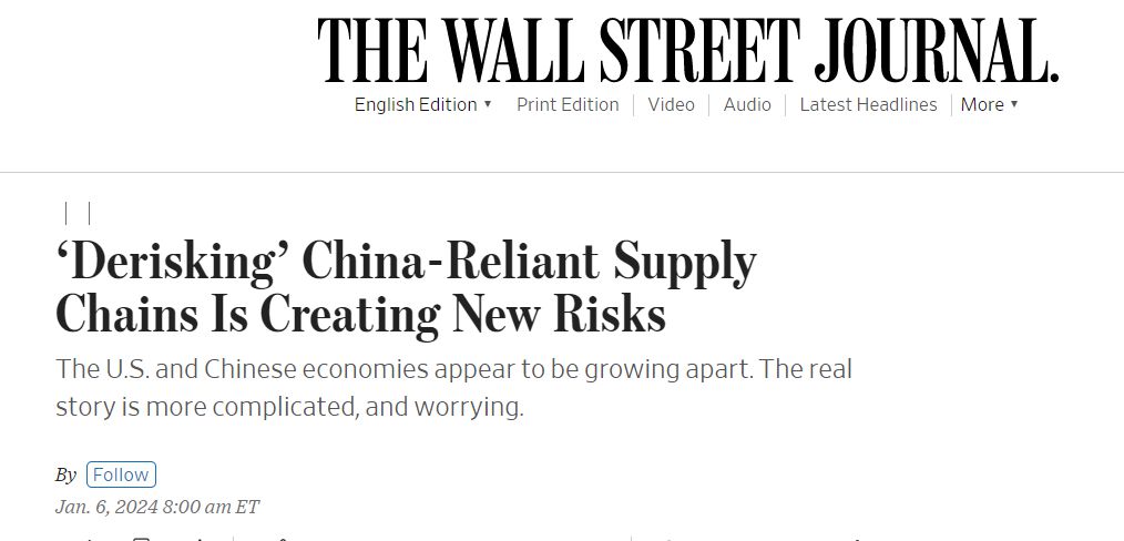 中國日報網1月8日電 美國《華爾街日報》網站報道稱,最新研究揭示了美西方針對中國供應鏈實施“去風險化”政策的實際效果。初步結論令人擔憂:旨在打造彈性供應鏈的相關措施,可能是虛幻的。結果將導致全球供應鏈變得更為復雜,反而會產生新的風險。